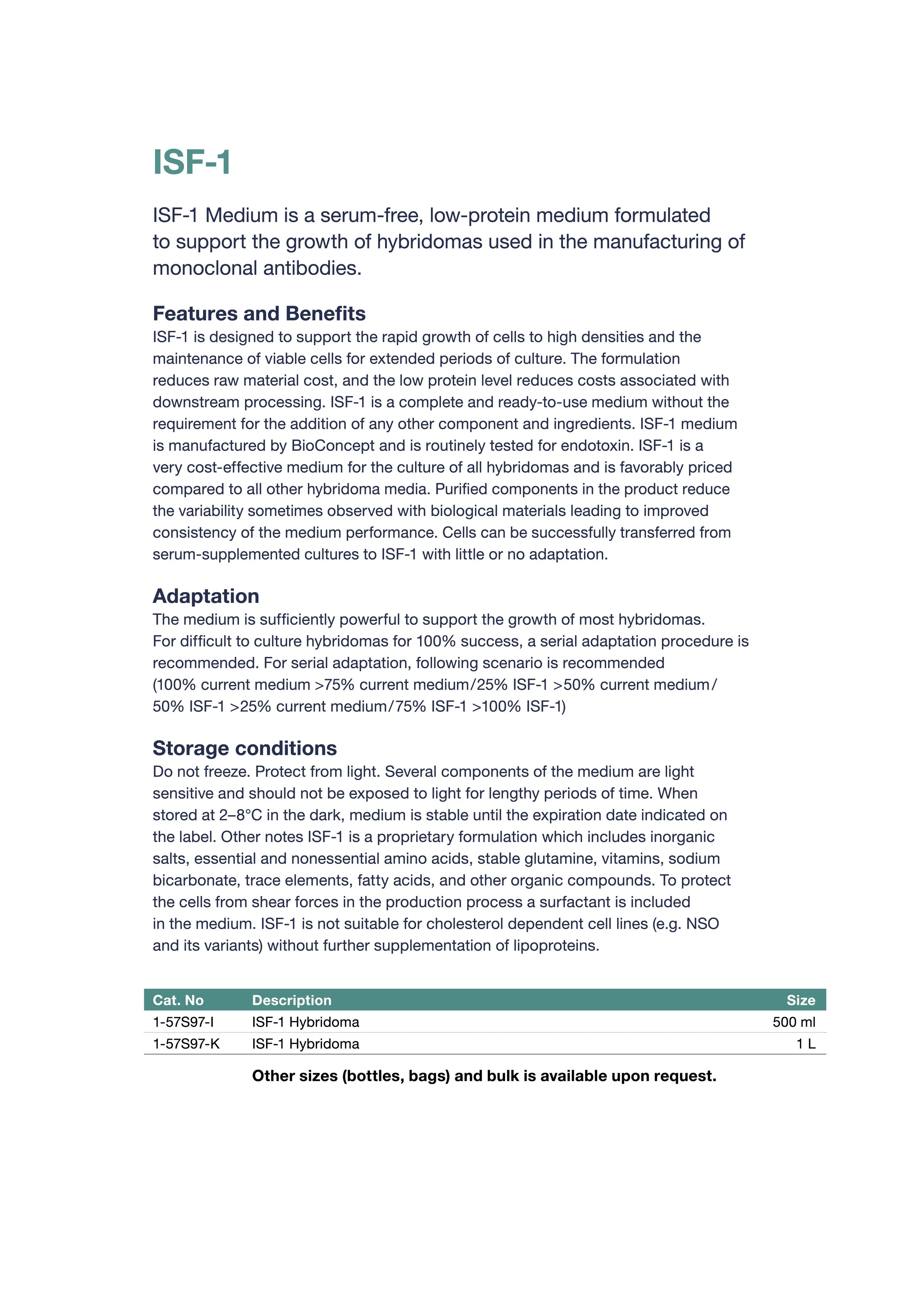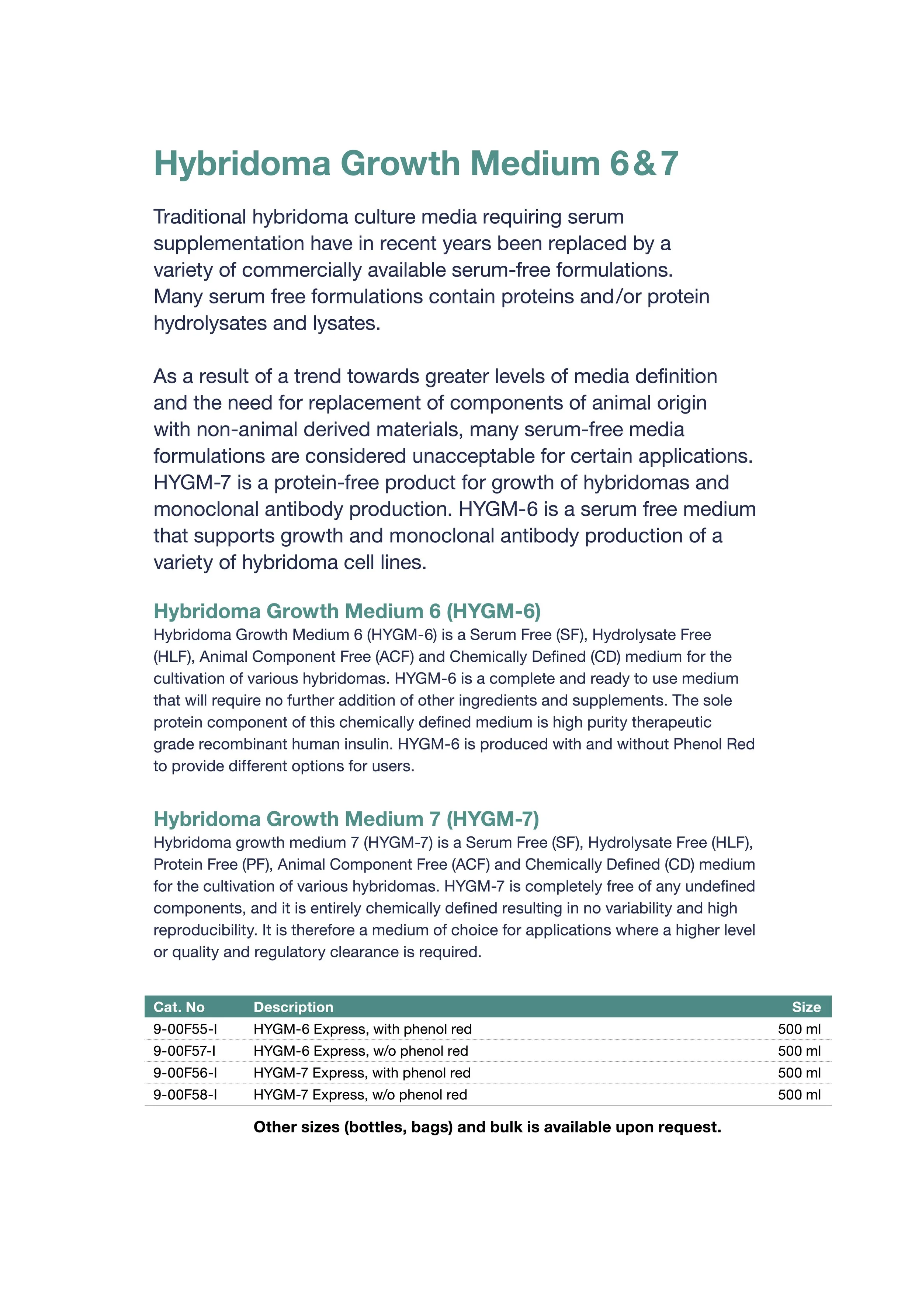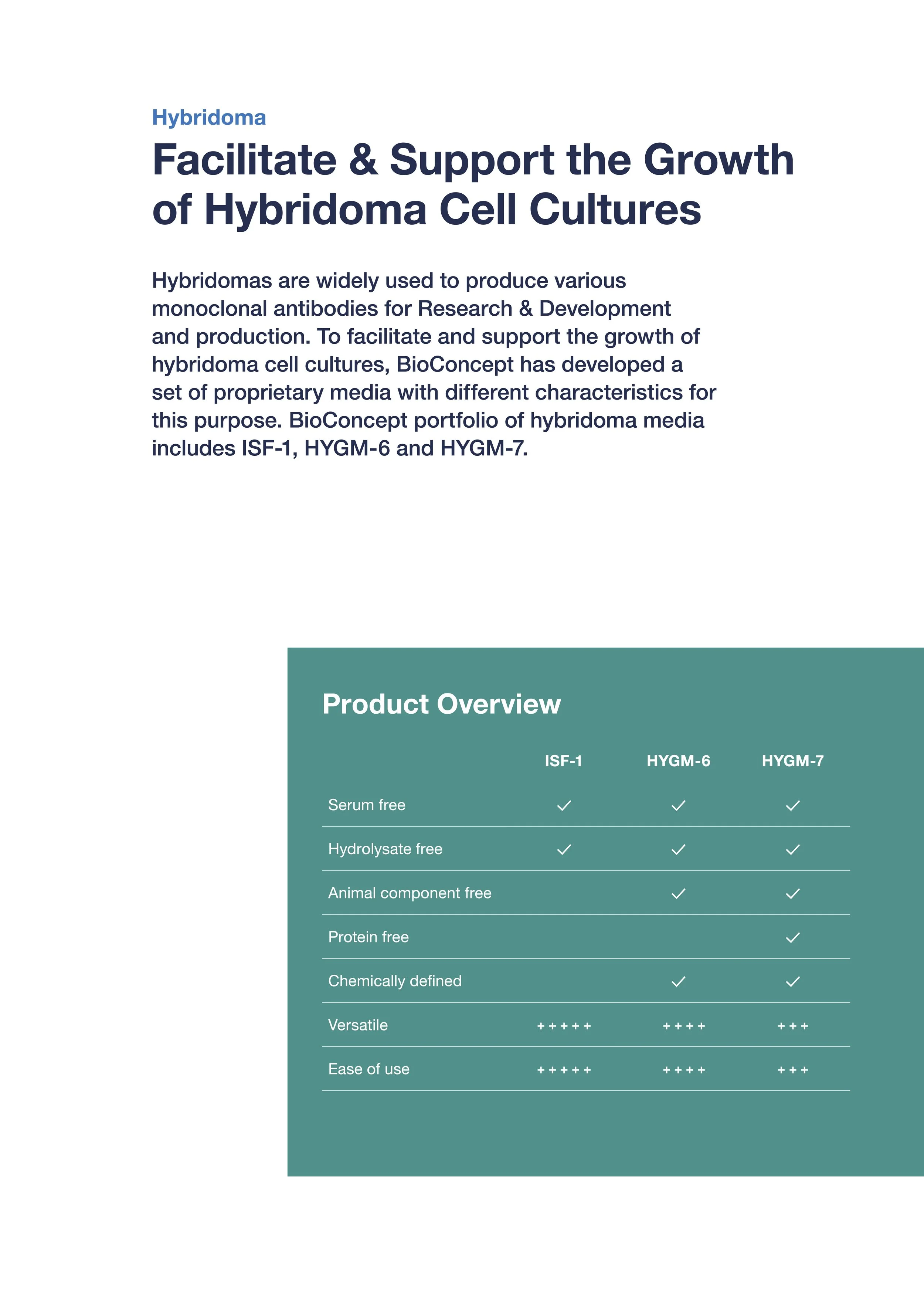 SERMED is an official distributor of BioConcept cell culture media. We provide researchers and laboratories with high-quality production, research and hybridoma media, including MAM-PF, ISF-1, HYGM-6, HYGM-7 and HEKxpress.